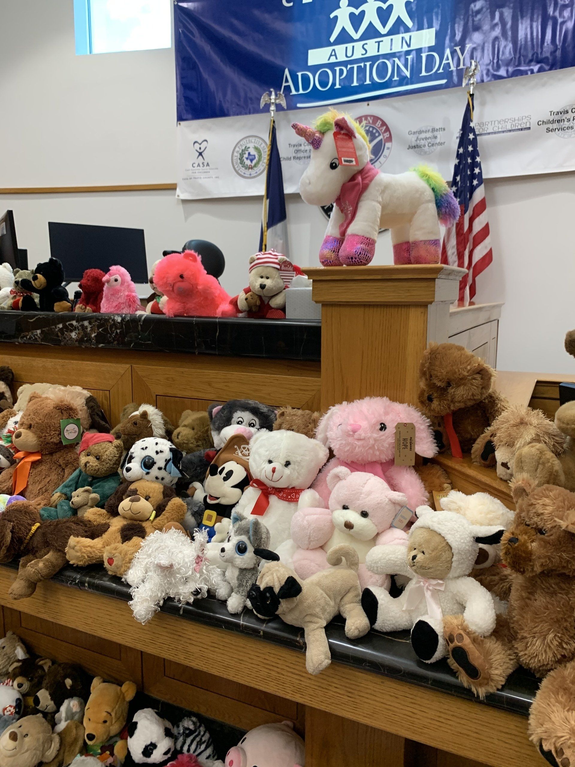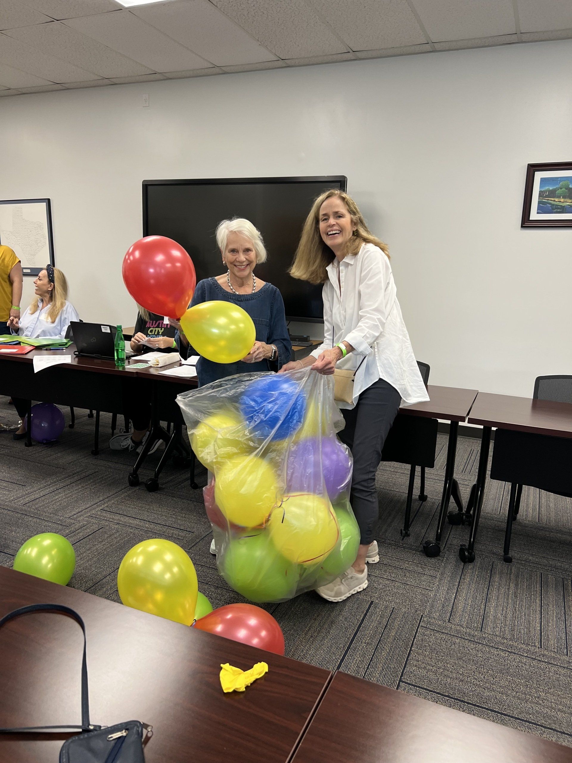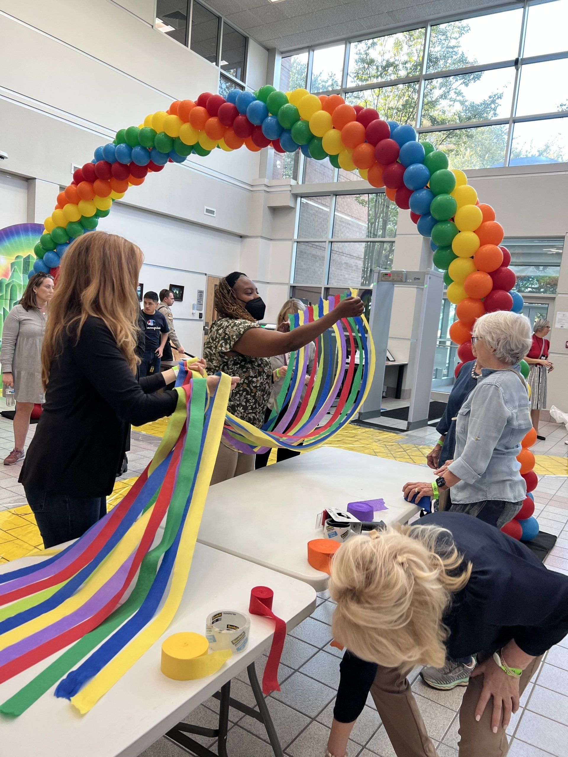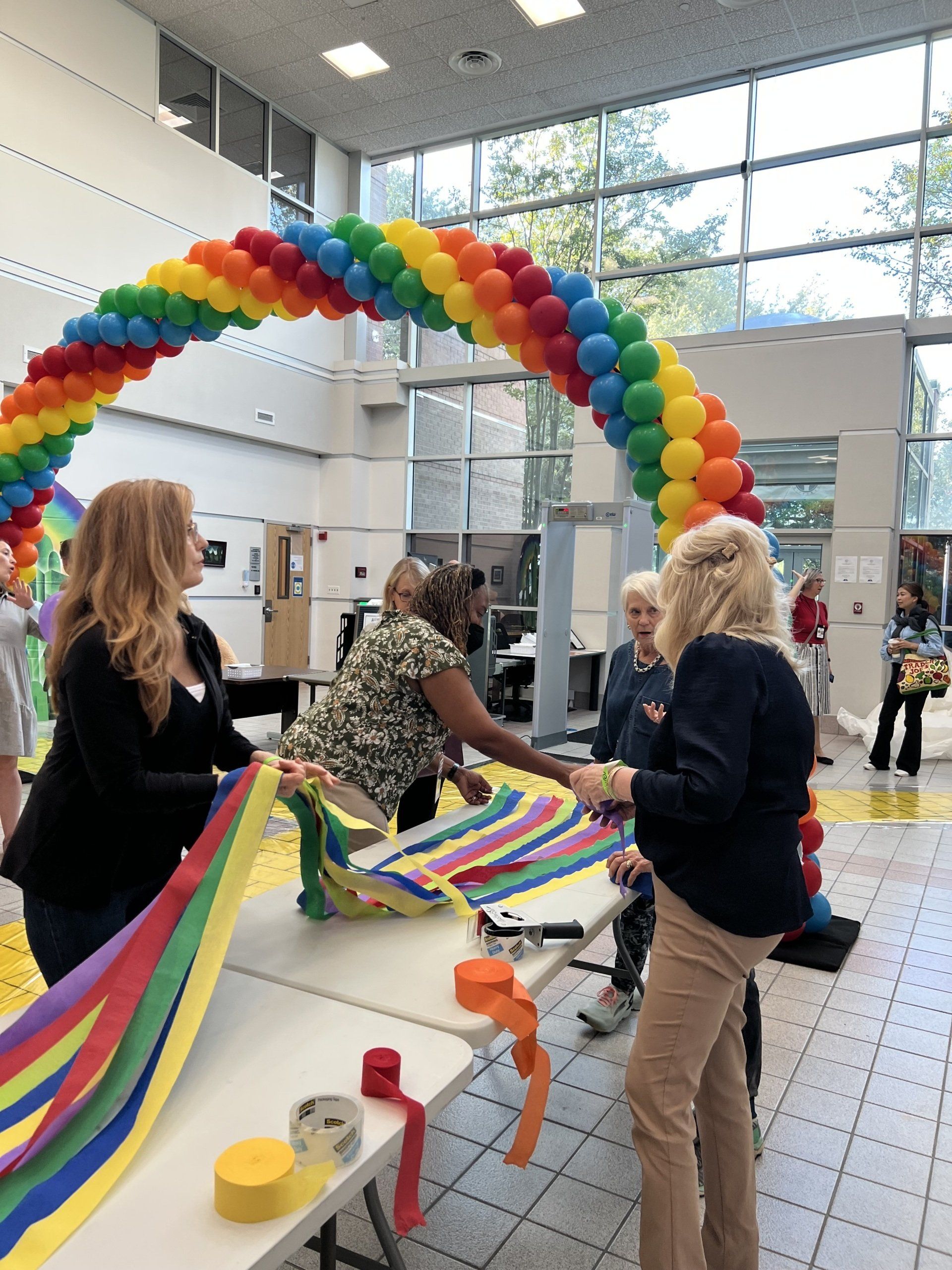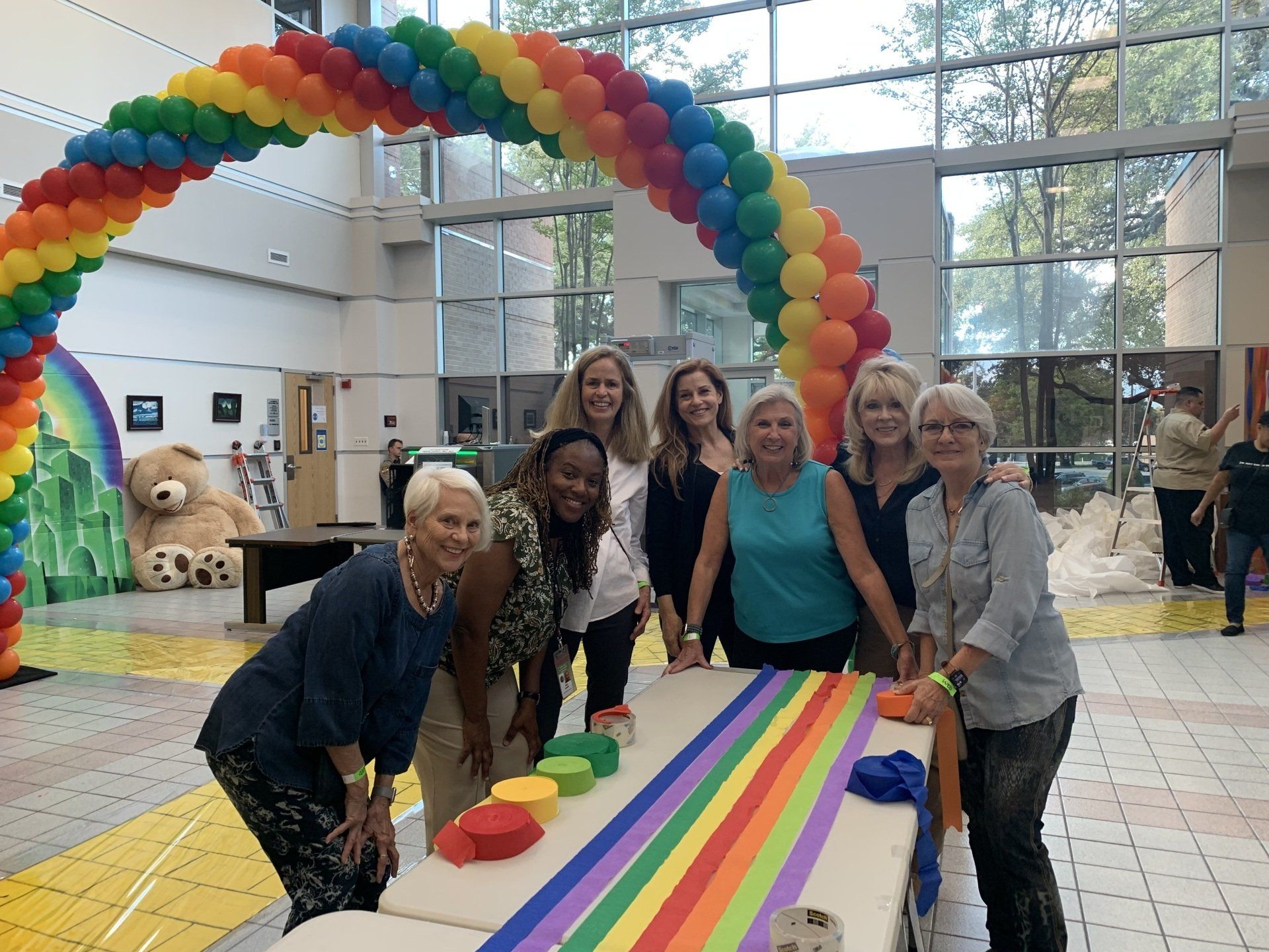 Austin Lawyers’ Auxiliary blew up tons of balloons, hung crepe paper, glue signs, decorated doors to help turn the Gardner Betts Juvenile Center into the Land of Oz for Austin Adoption Day.